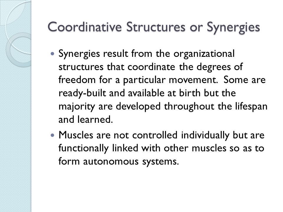 The FMS and the associated tests within it, consider movement quality (i.e., smooth and coordinated movement) over performance output (i.e., maximum force production, power, cardiac output etc…) as the foundations to program design and injury prevention (Cook et al., 2014). Similar to Janda’s movement assessments, the FMS attempts to capture the coordination of prime movers, synergists, and stabilizers, considered the foundations of motion (Page et al., 2010). Focus is placed on the smooth sequencing and coordination of movement, instead of isolated muscle and joint performance, because the latter does not provide requisite insight into robust, multi-joint and multi-muscle motions, considered the method in which the body truly operates (Cook et al., 2014). In essence, both approaches of Janda and the FMS recognize and abide by the motor learning concept of coordinative structures; the body coordinates many muscles simultaneously in the form of patterns, instead of controlling each muscle and joint individually (Magill, 2011).